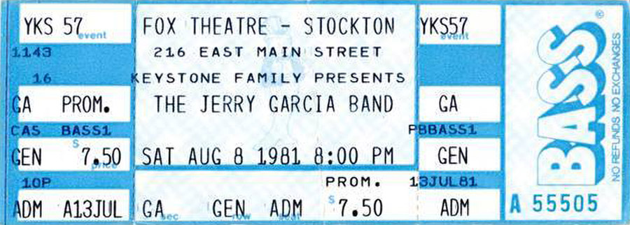 preview: "Garcia Band to play in Stockton," Lodi News-Sentinel, August 6, 1981, p. 10, accessed via Google News; this preview names the personnel, less the singers: Jerry Garcia, John Kahn, Melvin Seals, Daoud Shaw on drums, and Jimmy Warren on piano, one of the few times you'll see the latter two guys' names in print in the Garciaverse.