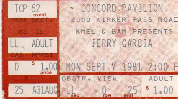 Benefit for B.A.M.A. (Bay Area Music Archives, then being "curated" by Paul Grushkin). The $1 ticket price was underwritten by KMEL - see lostlivedead post in references for more information. The band got $1,000 from BAM magazine for the gig (Concord Pavilion, "Show Files: Other: Jerry Garcia Band – revised fall schedule, 1981" Grateful Dead Archive, Special Collections, UC Santa Cruz, MS.332.ser. 3, box 167, folder 12).