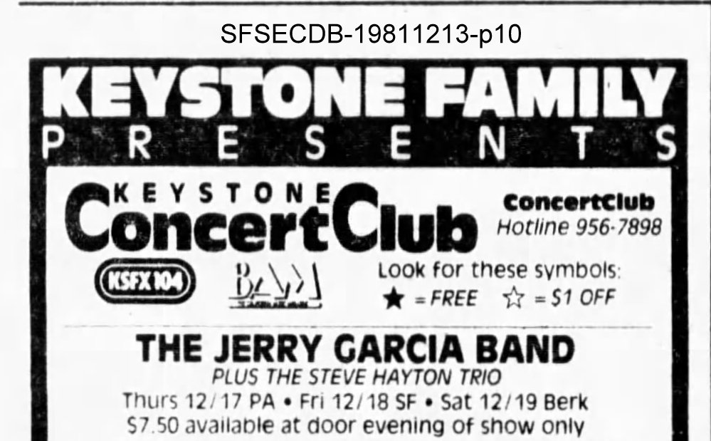 ads: San Francisco Sunday Examiner and Chronicle Datebook, December 6, 1981, p. 14 |San Francisco Sunday Examiner and Chronicle Datebook, December 13, 1981, p. 10