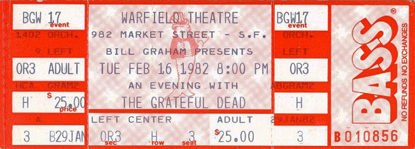 Benefit for lots of different causes (on the eventual Rex model): American Friends Service Committee; Haight-Ashbury Free Medical Clinic; the Mayor's Youth Fund; Senior Escort Outreach Program; Marin Act in San Rafael; the Mattole (Humboldt County) Watershed Support Group; Meta Tanty, Inc., a spiritual Native American community; Seva, whose main project is treating blindness in Nepal; the Research Into Lost Knowledge Organization of England; the Naropa School for Disembodied Poets [sic: Jack Kerouac School of Disembodied Poetics, h/t Steve Silberman]; and campaigns to halt the Peripheral Canal. See "The Dead in benefits," San Francisco Examiner, January 23, 1982, p. A8.