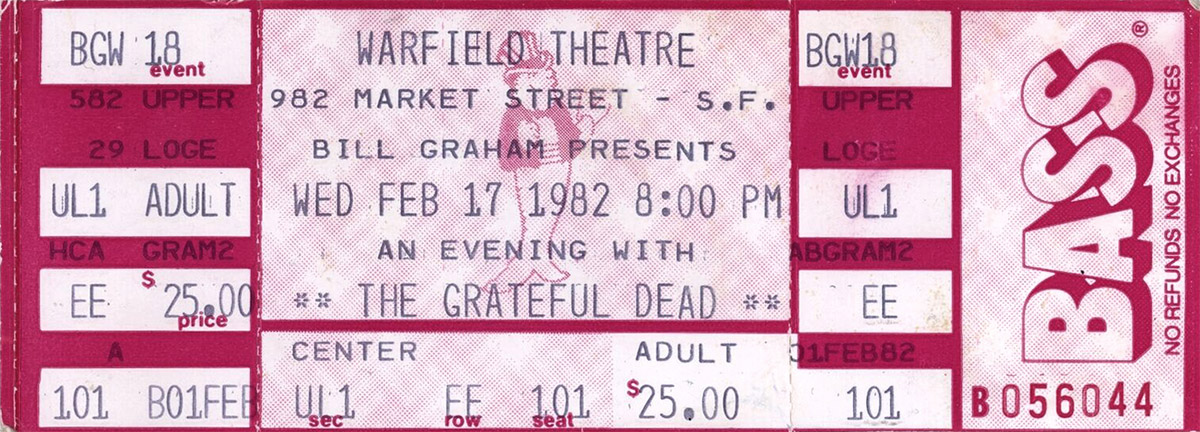 Benefit for lots of different causes (on the eventual Rex model): American Friends Service Committee; Haight-Ashbury Free Medical Clinic; the Mayor's Youth Fund; Senior Escort Outreach Program; Marin Act in San Rafael; the Mattole (Humboldt County) Watershed Support Group; Meta Tanty, Inc., a spiritual Native American community; Seva, whose main project is treating blindness in Nepal; the Research Into Lost Knowledge Organization of England; the Naropa School for Disembodied Poets [sic: Jack Kerouac School of Disembodied Poetics, h/t Steve Silberman]; and campaigns to halt the Peripheral Canal. See "The Dead in benefits," San Francisco Examiner, January 23, 1982, p. A8.