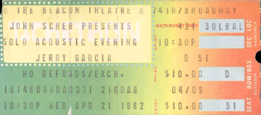 ref: Roman Kozak, "John Scher Moves East of Hudson," Billboard, April 24, 1982, p. 44; Kozak notes that this ends the de fact arrangement whereby Scher stayed West of the Hudson and Ron Delsener owned NYC. This was a big move for John Scher, and it's not surprising that Jerry would help him make it - they were very close, and their careers advanced together. See JGMF, Jerry Garcia and John Scher.