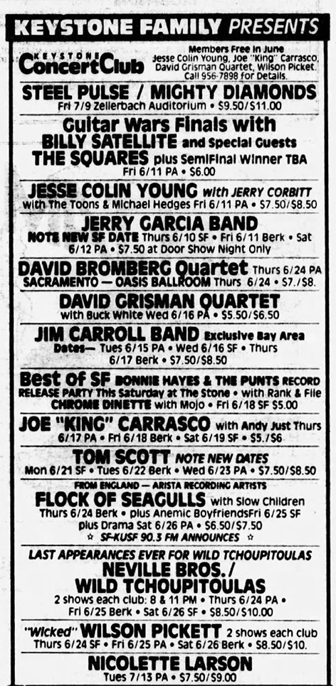 ads: San Francisco Sunday Examiner and Chronicle Datebook, May 30, 1982, p. 22 |San Francisco Sunday Examiner and Chronicle Datebook, June 6, 1982, p. 28