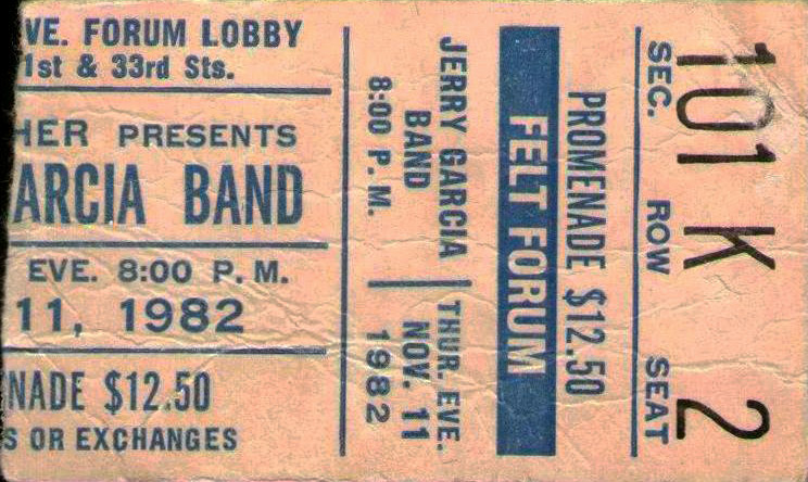 JERRY GARCIA BAND 11-11-1982 FELT FORUM MADISON SQUARE GARDEN NEW YORK NY EARLY SHOW