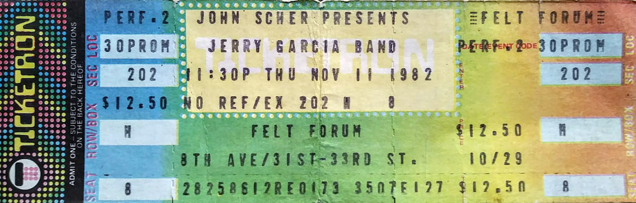 JERRY GARCIA BAND 11-11-1982 FELT FORUM MADISON SQUARE GARDEN NEW YORK NY LATE SHOW