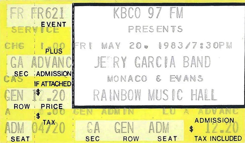 Sue for the two shows: Capacity 2,840, tix $12 advance and $13 at the door, GP $34,080. Band guaranteed $15,000 plus $1k production. Billboard ( June 4, 1983, p. 53) erroneously reported two sellouts of 2,047 tickets and gross of $24,900.00 for each show.