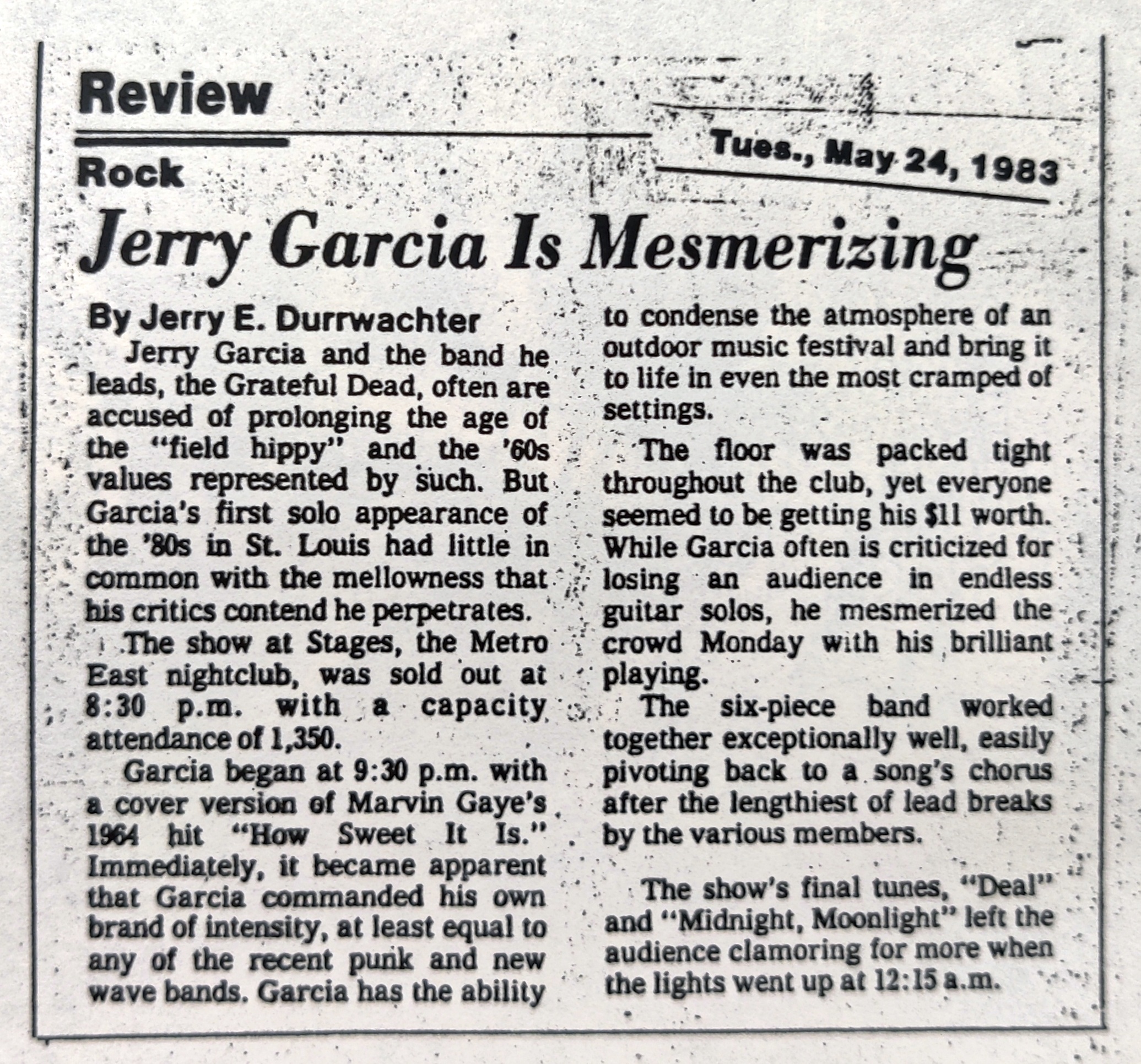 JERRY GARCIA BAND 5-23-1983 STAGES EAST ST LOUIS IL