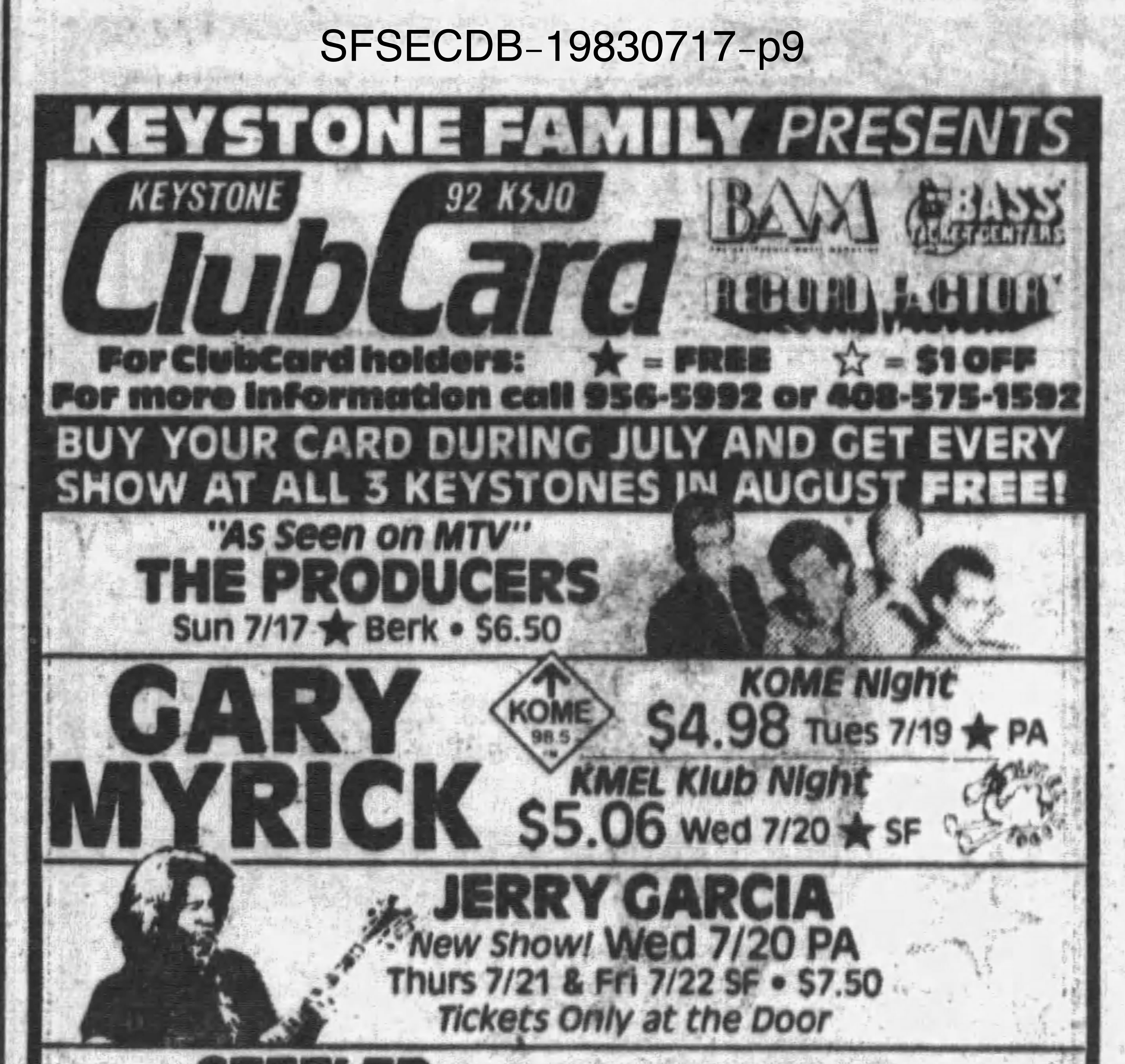 ad: San Francisco Sunday Examiner and Chronicle Datebook, July 17, 1983, p. 9