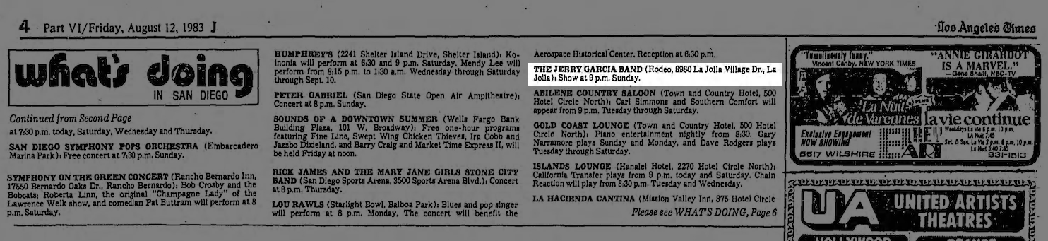 listing: San Diego Union, August 14, 1983, p. E-9