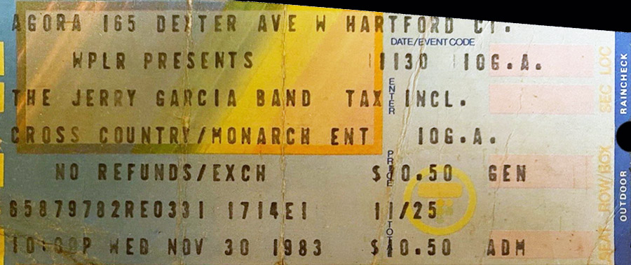 JERRY GARCIA BAND 11-30-1983 HARTFORD AGORA HARTFORD CT
