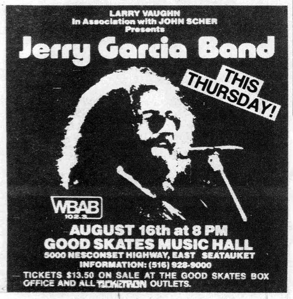JERRY GARCIA BAND 8-16-1984 GOOD SKATES ROLLER RINK EAST SETAUKET NY