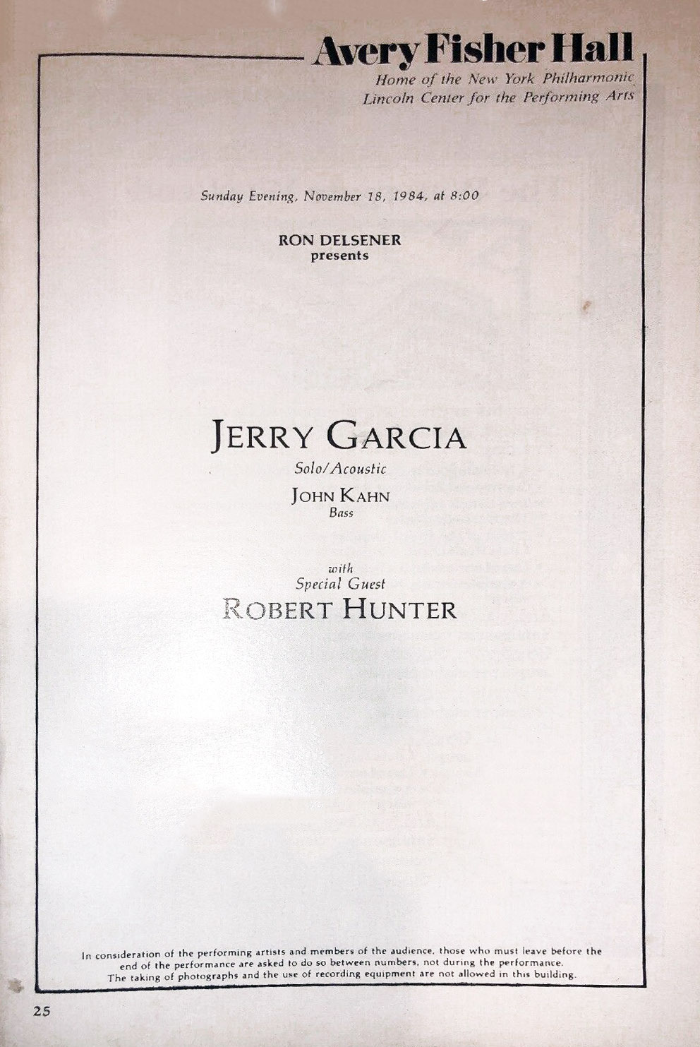 exante: Lincoln Center Stagebill (November 1984), pp. 25, 27