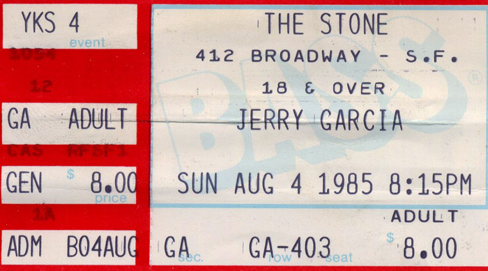Jerry Garcia Band - 8/4/85 - The Stone - San Francisco, Ca - aud