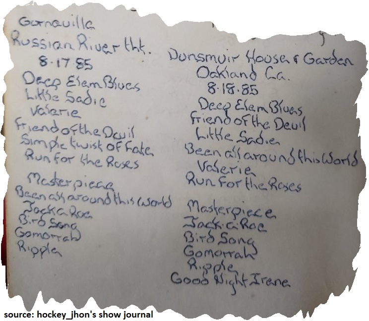JERRY GARCIA AND JOHN KAHN 8-17-1985 RIVER THEATER GUERNEVILLE CA