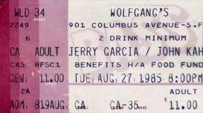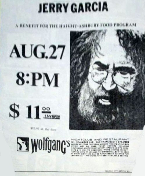 Benefit For Haight-Ashbury Food And Shelter program. This was part of Garcia's deal with the judge, reported in the SFC 3/20/85, to avoid trial on drug charges.