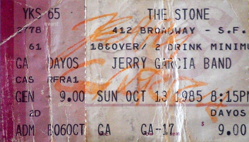 JERRY GARCIA BAND 10-13-1985 THE STONE SAN FRANCISCO CA