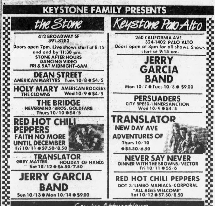 ad: San Francisco Examiner Datebook, October 13, 1985, p. 22;
