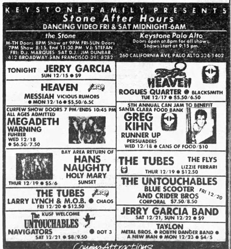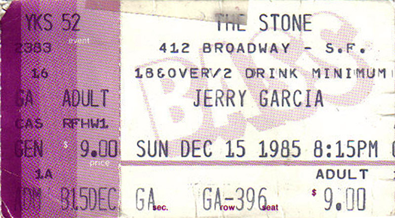 JERRY GARCIA BAND 12-15-1985 THE STONE SAN FRANCISCO CA