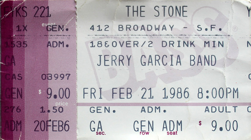 JERRY GARCIA BAND 2 -21-1986 THE STONE SAN FRANCISCO CA
