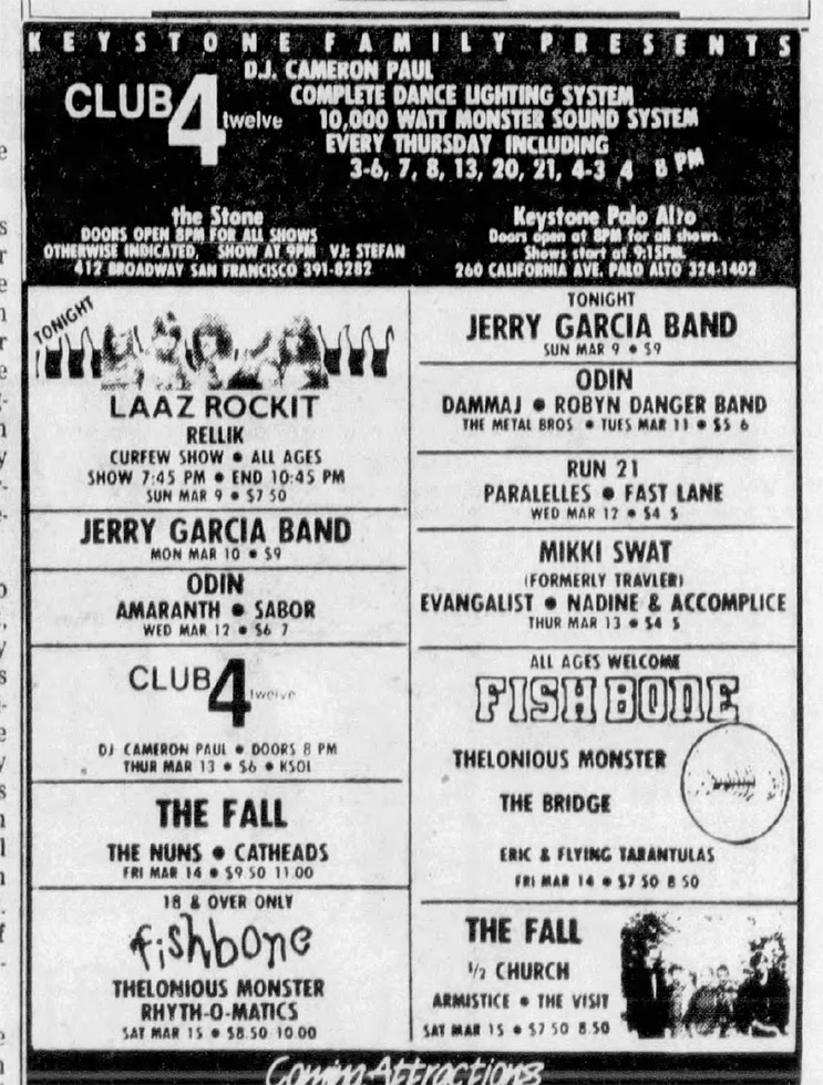 JERRY GARCIA BAND 3-9-1986 KEYSTONE PALO ALTO PALO ALTO CA