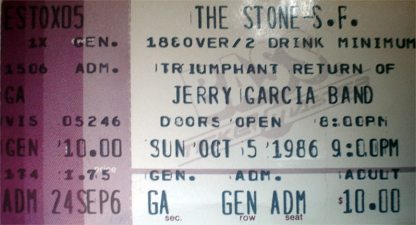 Jerry Garcia Band - 10/5/86 The Stone, San Francisco, CA