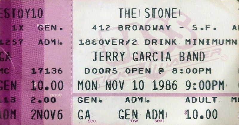 JERRY GARCIA BAND 11-10-1986 THE STONE SAN FRANCISCO CA