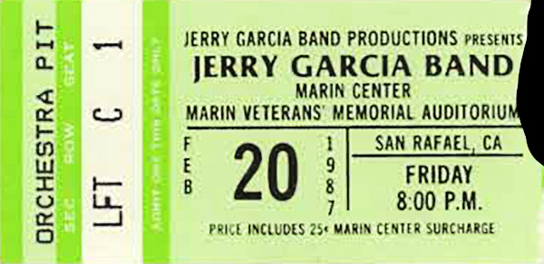 JERRY GARCIA BAND 2-20-1987 MARIN COUNTY VETERANS AUDITORIUM SAN RAFAEL CA