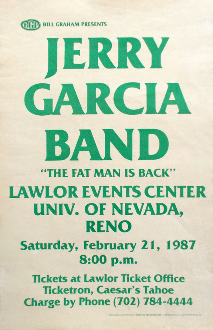 JERRY GARCIA BAND 2-21-1987 LAWLOR EVENTS CENTER UNIVERSITY OF NEVADA RENO NV