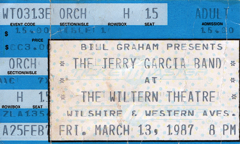 review: [positive] Enry 1987: focuses on the hippy throwback theme, but includes adjectives poignant, elegiac, faintly sorrowful; "Vibe was not sullen … but vulnerable, healing, serene." Listening to JGB, "one doesn't get off on images and pose, but on the endless invitation to a voyage, to letting go, grooving on the waves of [Garcia's] sound." | [positive] Paul 19870316, descriptions like "fully recovered," "warm," ,"healthy," "trimmer," with greater vigor and intensity than the prior year at the Wiltern.