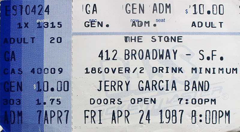 JERRY GARCIA BAND 4-24-1987 THE STONE SAN FRANCISCO CA