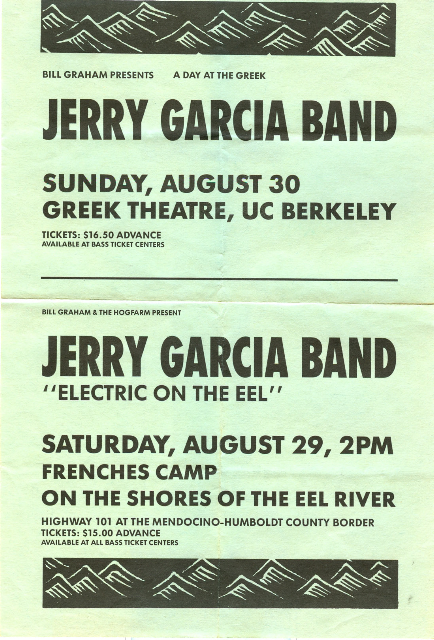 JERRY GARCIA BAND/JERRY GARCIA ACOUSTIC BAND 8-29-1987 FRENCH'S CAMP ON THE EEL RIVER PIERCY CA