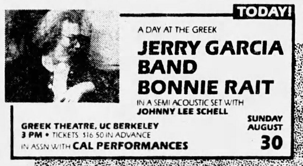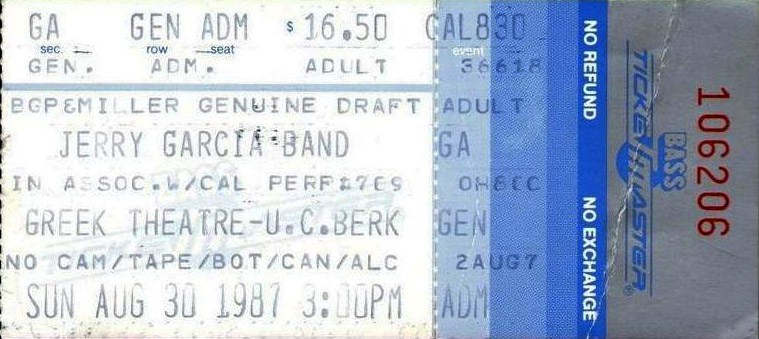 JERRY GARCIA BAND 8-30-1987 THE GREEK THEATER BERKELEY CA