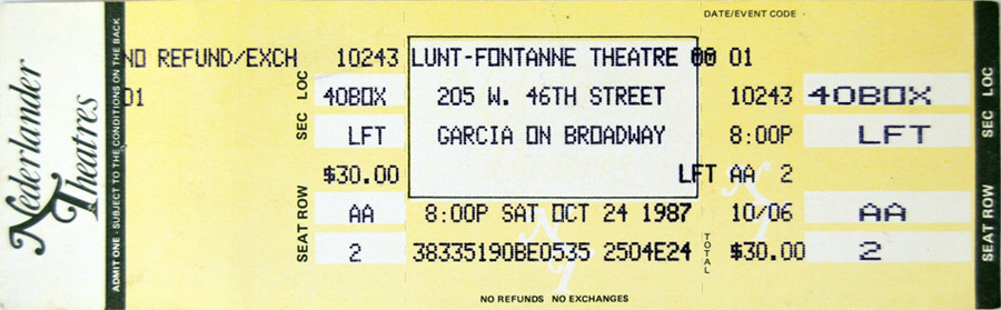 • Regarding Garcia on Broadway personnel, we have not pinned down nights when Kenny Kosek (fiddle) played w JGB, though we know he was not present for 10/28/87a.