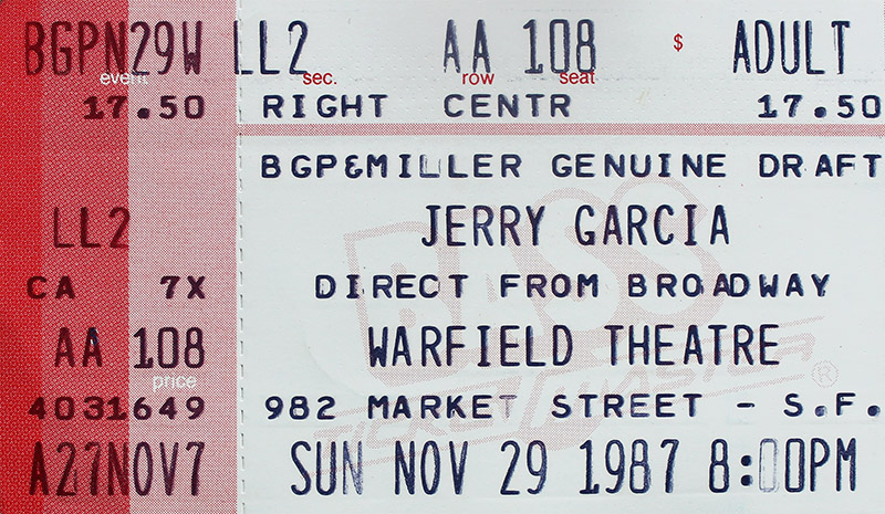 Jerry Garcia Acoustic Band - 11/29/87 - Warfield Theatre - San Francisco, CA - aud