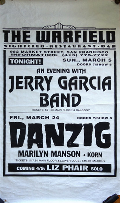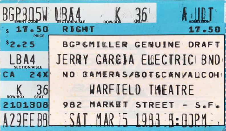 JERRY GARCIA BAND 3-5-1988 WARFIELD THEATRE SAN FRANCISCO CA