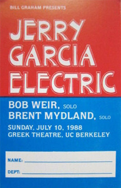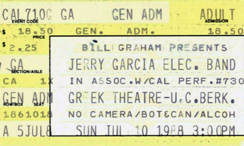 JERRY GARCIA BAND 7-10-1988 GREEK THEATRE BERKELEY CA
