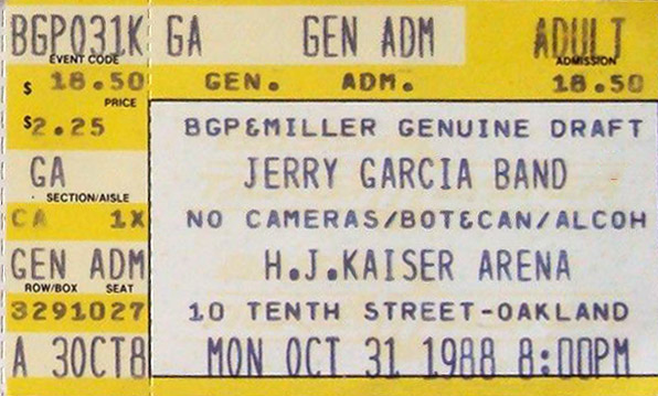 JERRY GARCIA BAND 10-31-1988 HENRY J KAISER CONVENTION CENTER OAKLAND CA