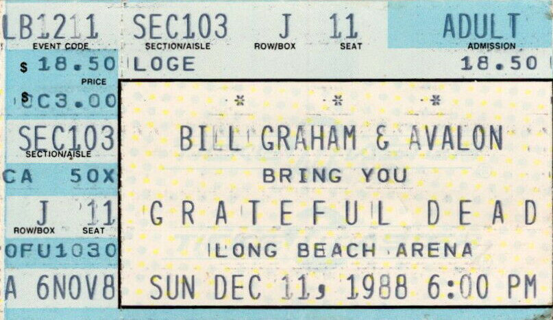 Grateful Dead Long Beach Arena, Long Beach, CA 12/11/88 2nd Set Only