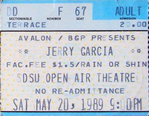 JERRY GARCIA BAND 5-20-1989 SAN DIEGO STATE UNIVERSITY OPEN AIR THEATER SAN DIEGO CA