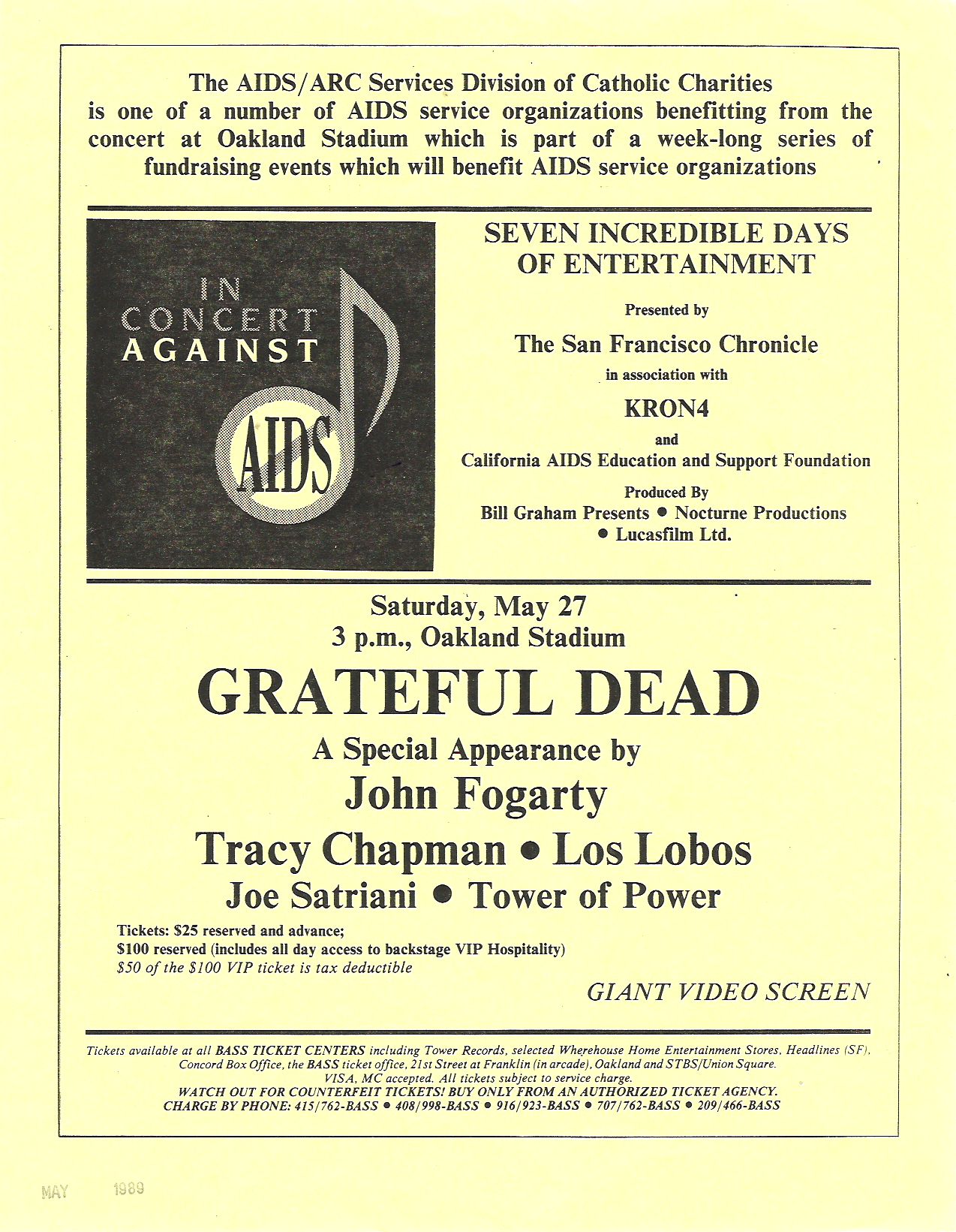 In Concert Against AIDS" at Oakland Stadium, CA May 27, 1989