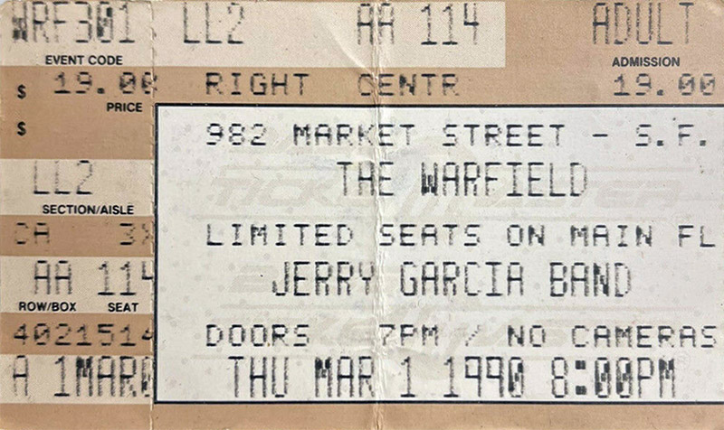 JERRY GARCIA BAND 3-1-1990 WARFIELD THEATRE SAN FRANCISCO CA
