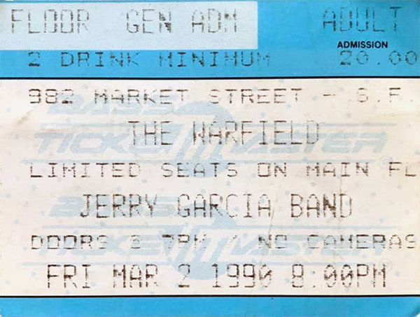 JERRY GARCIA BAND 3-2-1990 WARFIELD THEATRE SAN FRANCISCO CA