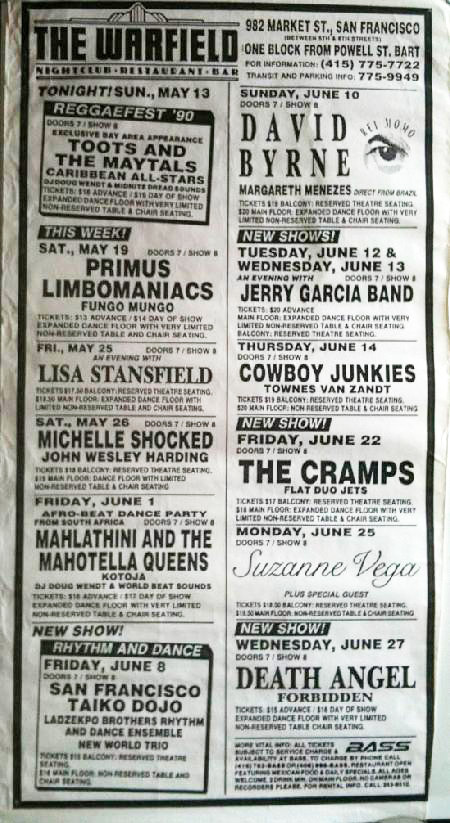 June 1990 at the Warfield