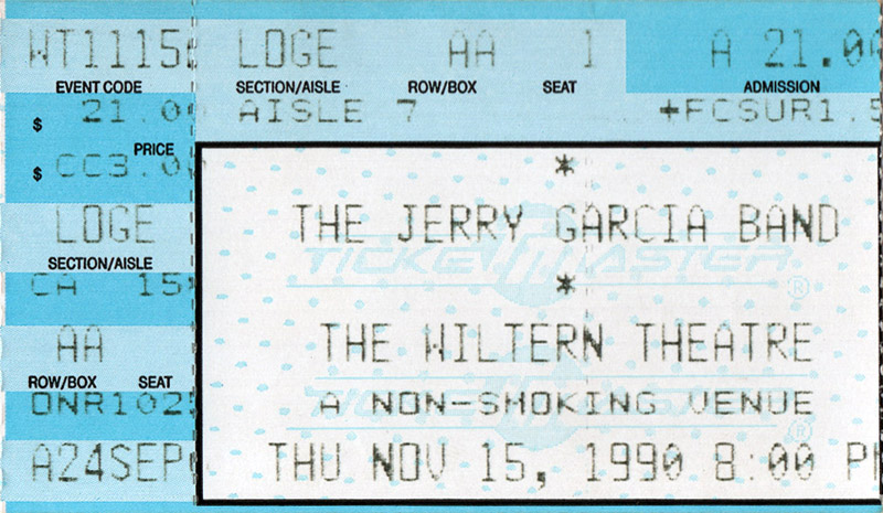 Garcia continues the four gig in five night Wiltern run, after having taken Keelin to Disneyland on the off-day (11/14/90).