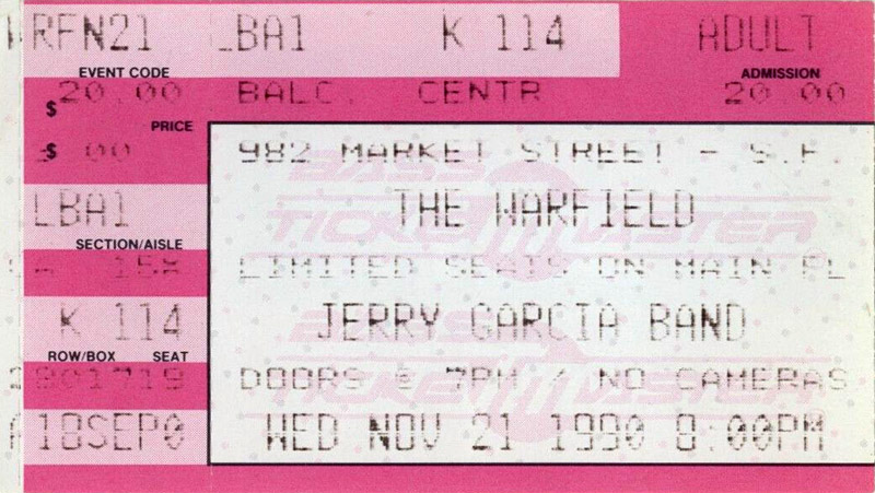 JERRY GARCIA BAND 11-21-1990 WARFIELD THEATER SAN FRANCISCO CA