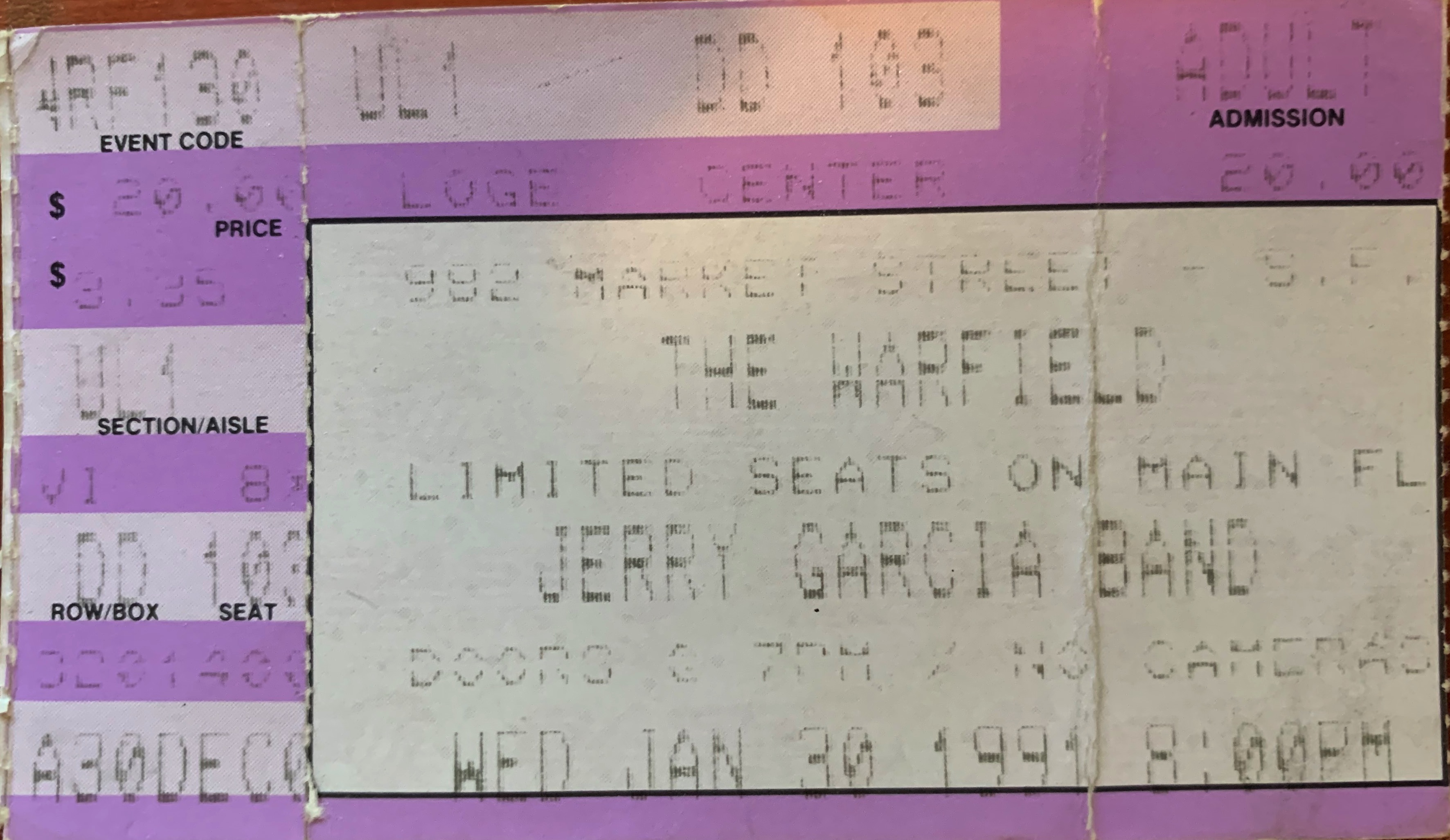 ref: Kelp 1991 says this run was not an immediate sellout, unlike the debut of Garcia-Grisman on Friday and Saturday. Tickets were still available for 1/31 as of the day of the show.