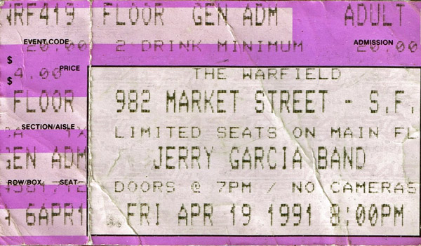 JERRY GARCIA BAND 4-19-1991 WARFIELD THEATER SAN FRANCISCO CA