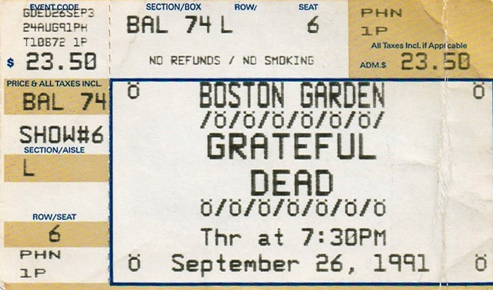 [1] Last performance (by GD) 1990-07-14 (107 events ago) and final time played by any act
