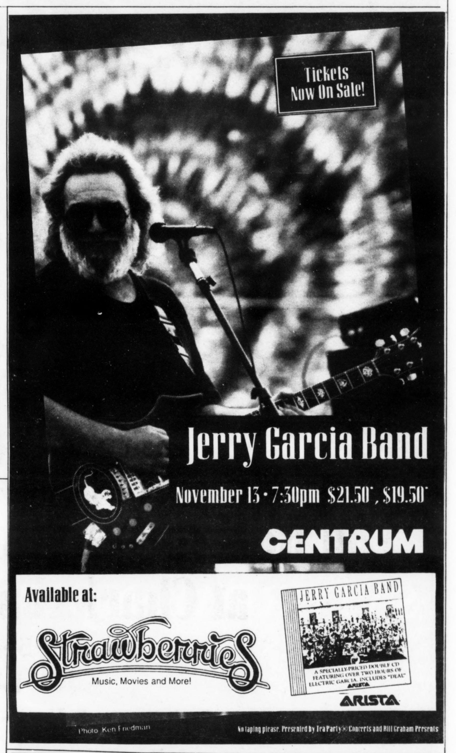 review: [positive] Morse 19911114: "If the ever-mutating Dead are draining some of Garcia's energy lately, as he has said in recent interviews, then you can see why he's refortified by his solo band. They're a comfortable, even-keeled quintet that played a sublime oldies party for a near-sellout 12,000 fans last night. ... The band is a lighter, more sweetly lyrical forum for Garcia, who avoids space jams in favor of tight, to-the-point soloing and deft rhythm chops. It's the same modus operandi as the Dead: no talking, just music. But it's a smaller band and he has less to compete against."