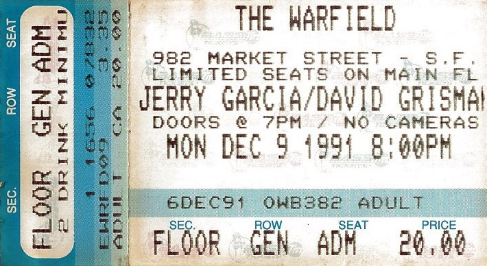 JERRY GARCIA AND DAVID GRISMAN 12-9-1991 WARFIELD THEATER SAN FRANCISCO CA